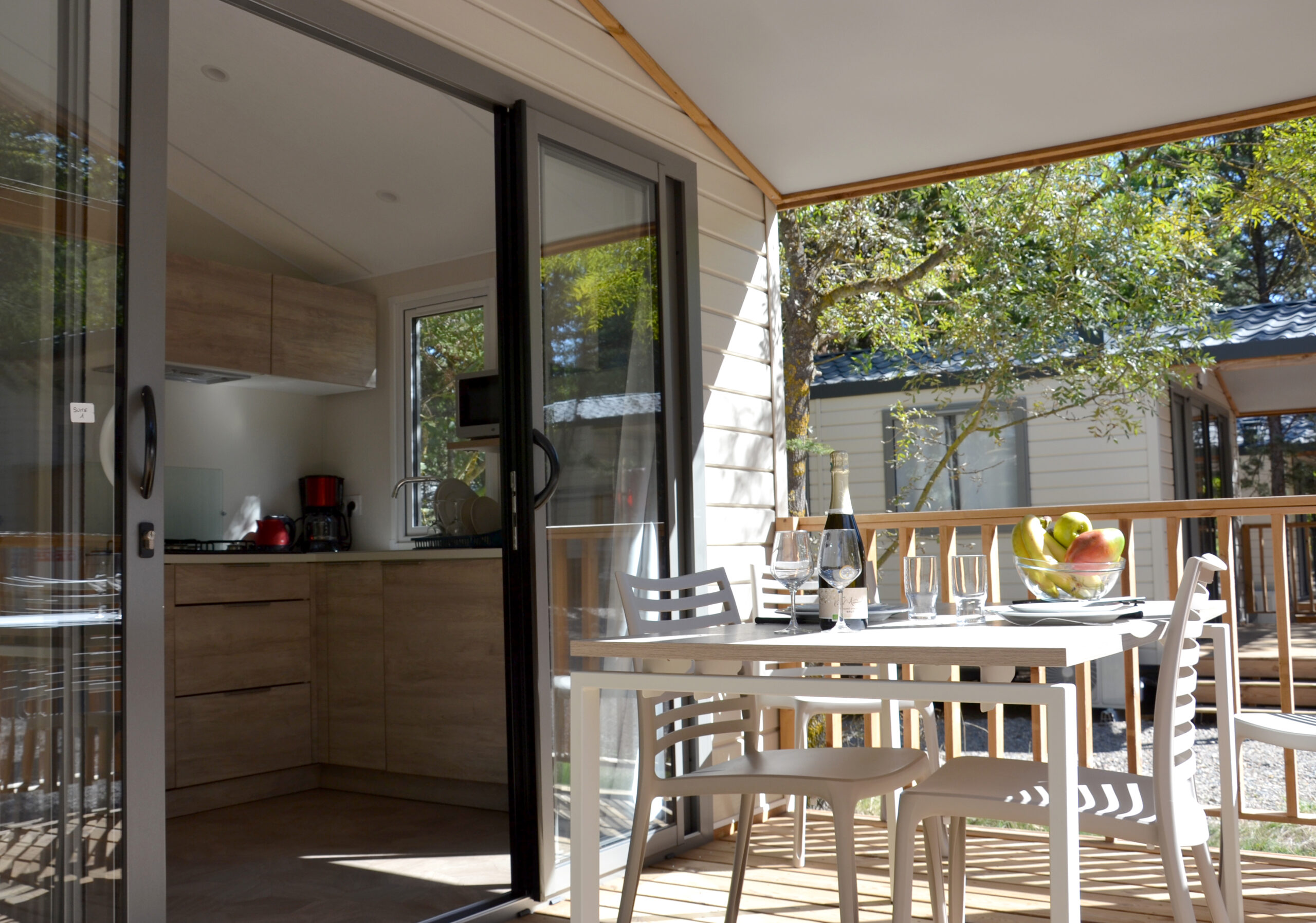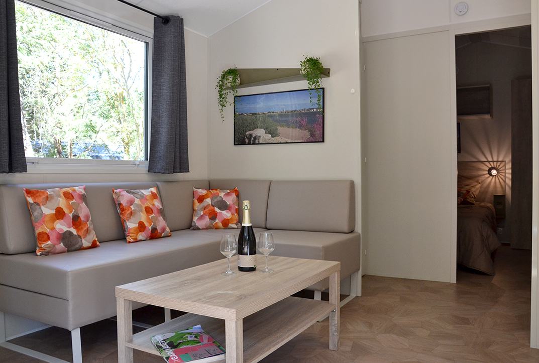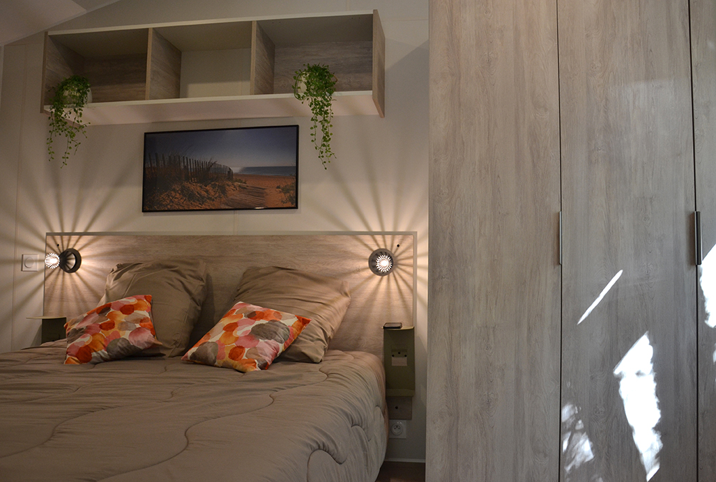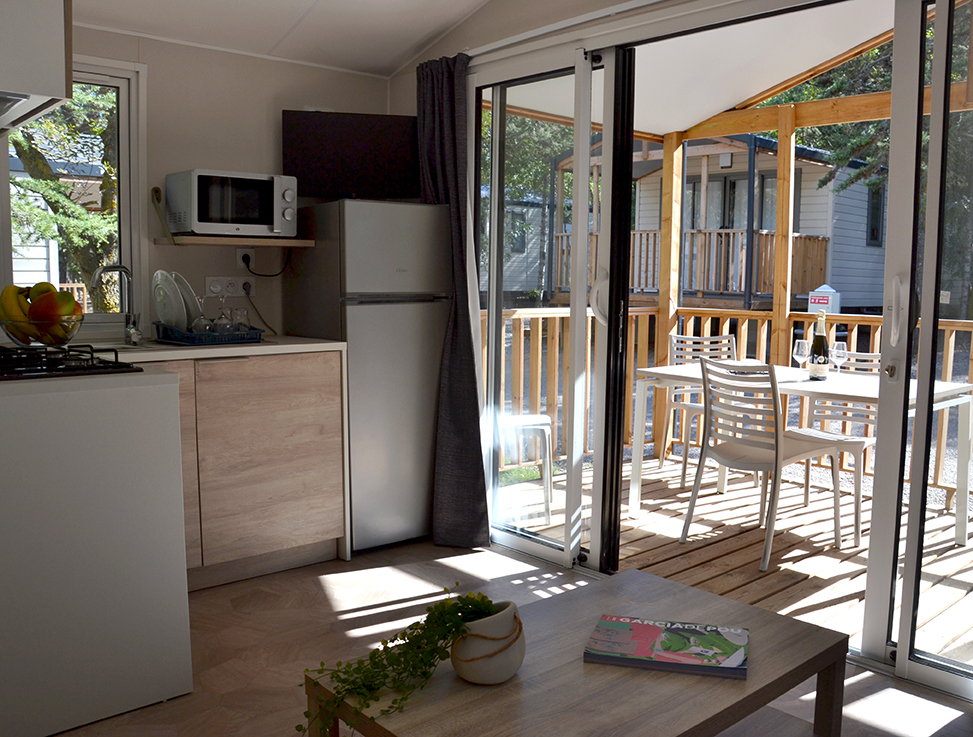 - Cuisine équipée : réfrigérateur / congélateur, plaque de cuisson gaz, cafetière électrique, micro-ondes, équipement vaisselle